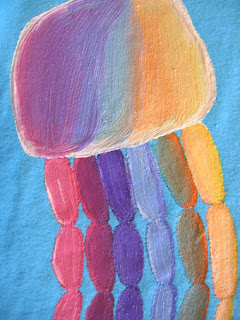 And this box jellyfish has been floating around in my head for ages, glad to have it out.I need to get better photos of it. It is the most gorgeous rainbow colours flat (I do love rainbows), but when the light catches it, the colours glow. Hand dyed and painted tee.